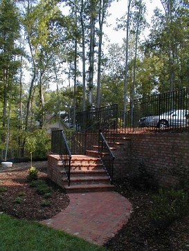Masonry or concrete steps that are detached from the house must be built on a strong foundation. As well as the appropriate structural foundation being used, be sure that newly graded soil is compacted and stable enough to support this heavy structure. I like the structural foundation to be installed on the original grade, not on fill when at all possible. Fill can be compacted just be sure it is done correctly and can support this added weight.